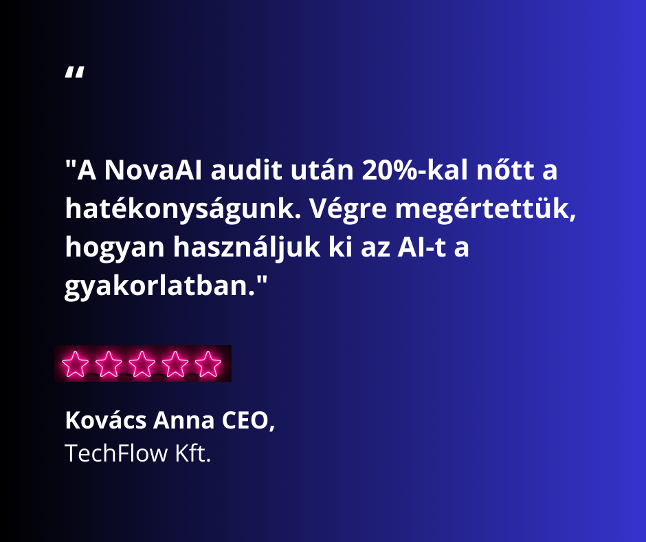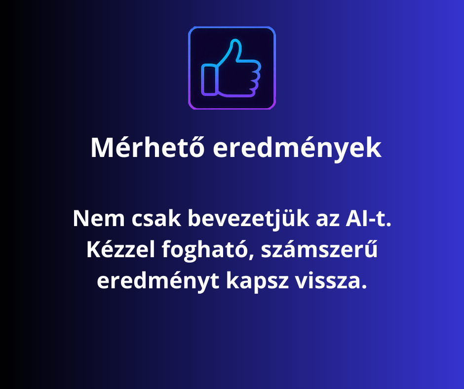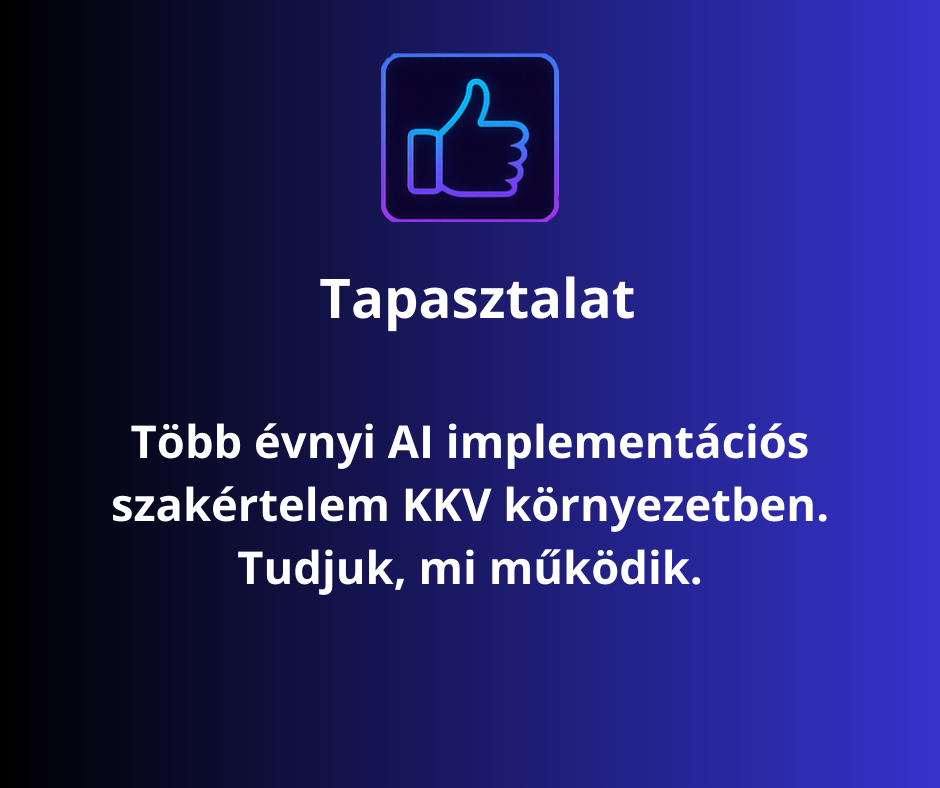 Független AI tanácsadóként célunk, hogy az AI ne bonyolultság, hanem lehetőség legyen a KKV-k számára. Átláthatóan, őszintén és szakmai alapon dolgozunk – nem eladni akarunk, hanem segíteni eligazodni az AI világában.
